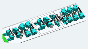 • 長(zhǎng)齡液壓回轉(zhuǎn)體回轉(zhuǎn)軸柔性生產(chǎn)線(xiàn),規(guī)劃加工兩種體、軸,將客戶(hù)的生產(chǎn)工序進(jìn)行壓縮。