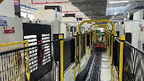 包含6臺五軸加工中心、地軌關(guān)節(jié)機器人、手爪系統(tǒng)、料倉、掃碼槍以及防護系統(tǒng)等全部自動加工單元